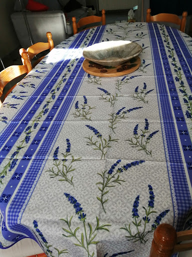 Je viens d'acheter 2 nappes, via le site web car depuis chez moi, venir jusque Colmar pour des courses, c'est un peu loin: j'y ai retrouvé l'équivalent d'une nappe ovale que j'aimais beaucoup mais qui au bout de 15 ans d'usage intensif a fait son temps :( . Désormais, ma table est remise en rond et cette merveille était disponible en circulaire, diamètre 180cm: le top!!! :) :)