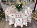 Cette belle nappe ronde en polyester anti-taches, sur fond beige, vous invite à un voyage hivernal et ludique dans les montagnes enneignées, sur les Vosges alsaciens par exemple.  de détail