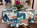 Nappe Poules et poussins, patchwork, carreaux, œufs, vert ou rouge,