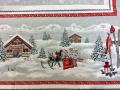 Superbe nappe hivernale, rectangulaire centrée, 100% coton, où l'on peut admirer une très belle scène de haute montagne, sous un manteau de neige épaisse, peuplé d'écureuils, lapins, sapins... Nous voilà plongés dans un tableau propre des hivers d'antan. de détail