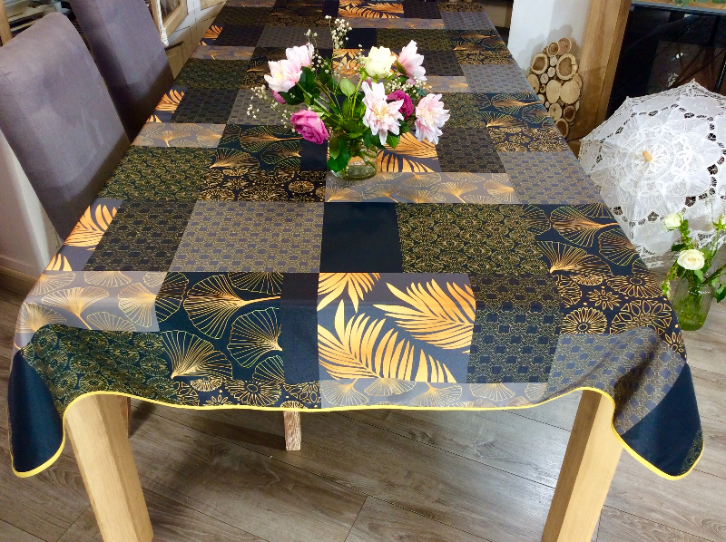 Inspirée de l’art du patchwork, cette nappe marie des motifs contrastés dans une composition équilibrée et rythmée. L'alternance des formes et des teintes crée un mouvement doux, presque musical, qui attire le regard sans jamais le lasser. À la croisée de la tradition artisanale et du design contemporain, cette étoffe transformera votre table en œuvre d’art éphémère.