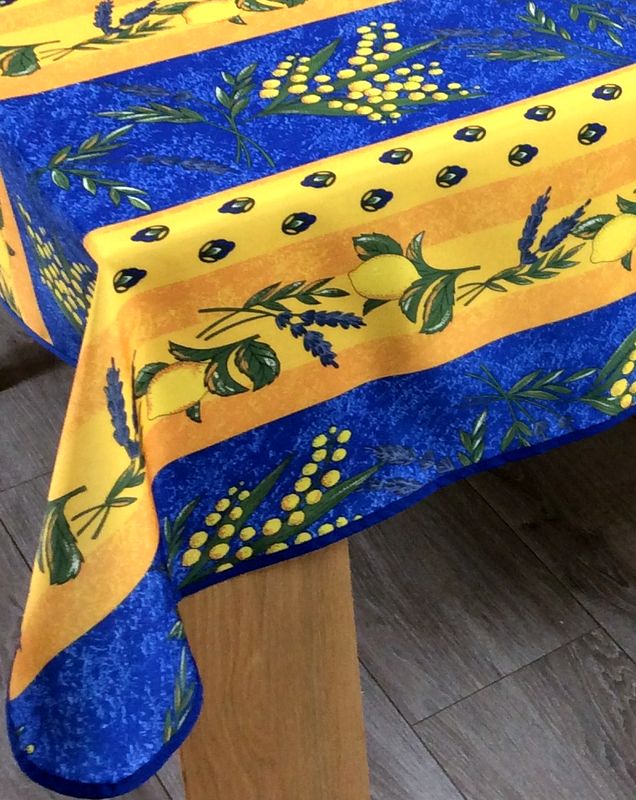 Nappe provençale Mimosa, lavande et citrons, bleu ou rouge,